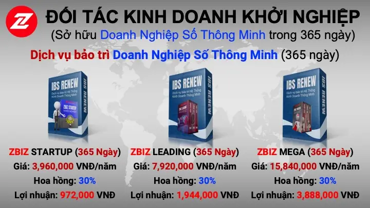 BAO GỒM TRONG DOANH NGHIỆP SỐ THÔNG MINH CỦA ĐỐI TÁC KINH DOANH KHỞI NGHIỆP ZBIZ STARTUP365